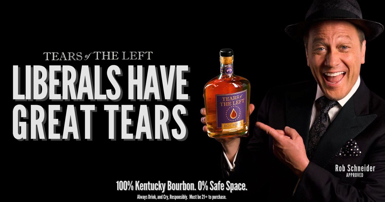 It’s not uncommon for celebrities to promote booze brands. It’s decidedly less common for Rob Schneider to do so, though. Companies typically want their endorsers to be popular, attractive, or at least palatable to a wide swath of the American drinking public. The frontman of 1999’s Deuce Bigalow: Male Gigolo and various right-wing conspiracy theories since is none of the above. But the same anti-vaxx paranoia, vile transphobia, and general screeching that make Schneider a bad pick for the face of a mainstream liquor brand make him well-suited to hustle hooch to people who share those views. And so: the reactionary comedian recently endorsed Tears of The Left, a contract brand that bills itself as “100% Kentucky bourbon. 0% safe space.”